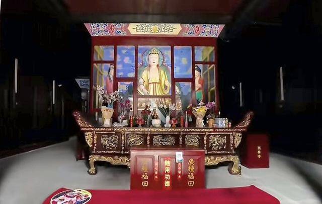 第三殿为观音殿,也是寺庙的最后一重殿。建筑为木结构,呈黑色,重檐歇山顶,庄重古朴。殿中供奉着观音菩萨,还有燃灯古佛、普贤菩萨、地藏王菩萨、文殊菩萨。殿内还有一通残旧的石碑。大殿的两侧还有厢房、禅房,斋堂等,错落有致。