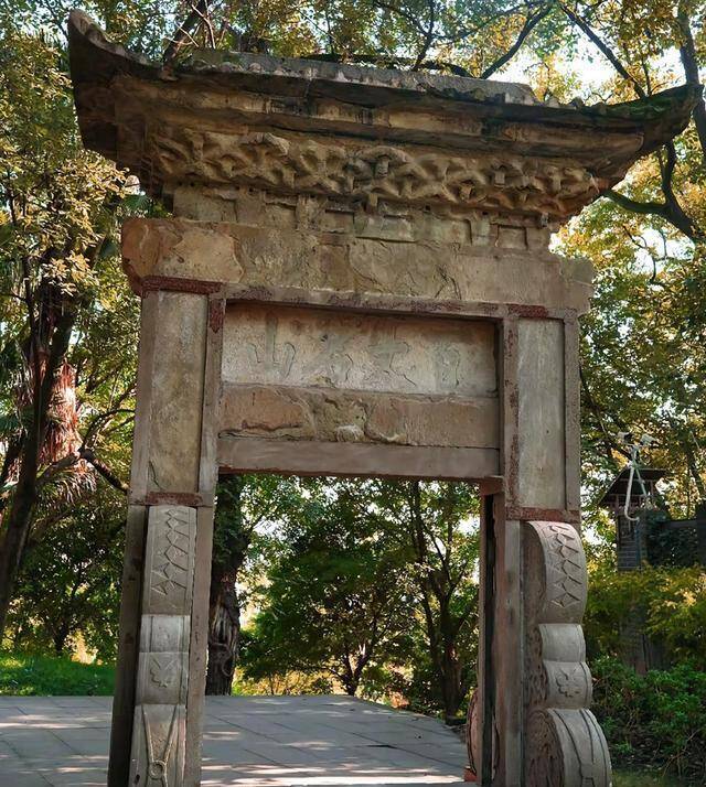 这是一座残坊,单门两柱,上面刻着“百丈名山”四个大字,落款为“三峰”。三峰即高公韶,内江人,明朝政治人物,官至户部侍郎。为报恩,特于明嘉靖庚戌年(1550)返乡,在游古西林寺时题书石牌坊“百丈名山”。牌坊的石头,已经被岁月打磨得发灰,但依然能看出当年的精致。历经四百多年风雨而不毁,是明代西林寺盛况的无声见证者。根据左右立柱两边的孔洞,推测以前应该是一座三门四柱的牌坊,现在只剩下单门两柱。