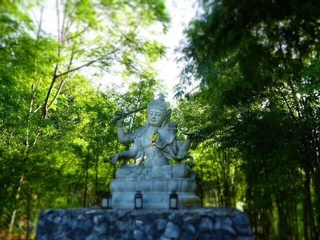 园内占地不小,能逛上好一会儿。最吸睛的,是一尊高达24尺的多杰雄登像,世界最大!除此之外,还有金泽财王庙、智慧殿、舍利塔等建筑。