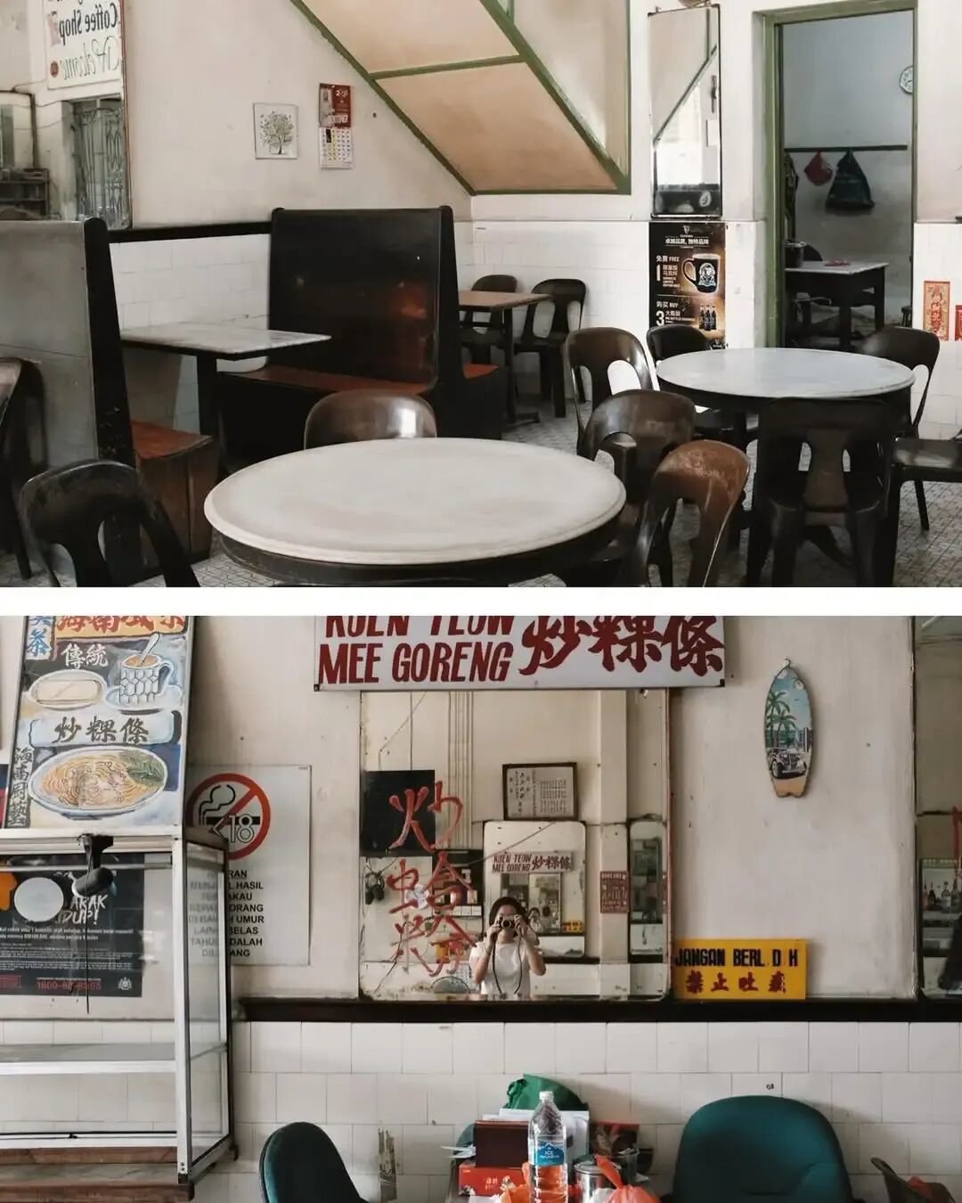 文冬人热衷于叹茶,大街小巷里还是开着不少老茶室。随后步行约4分钟来到📍长发茶室,对面是文冬巴刹。从马来西亚独立开到现在,店里还保留着复古桌椅、柜台和牌匾,很有年代感。推荐雪油面包与炒粿条,还有cham也很好喝。
